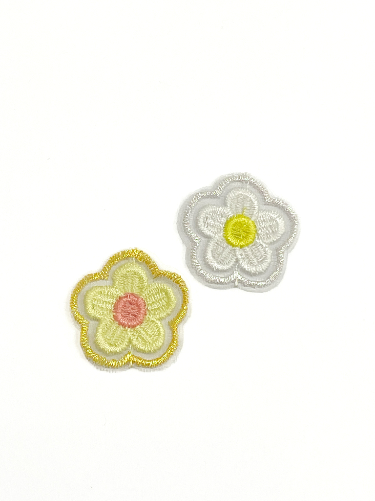 Aplique flor princess poliester branca/amarela 25mm - 2 unidades