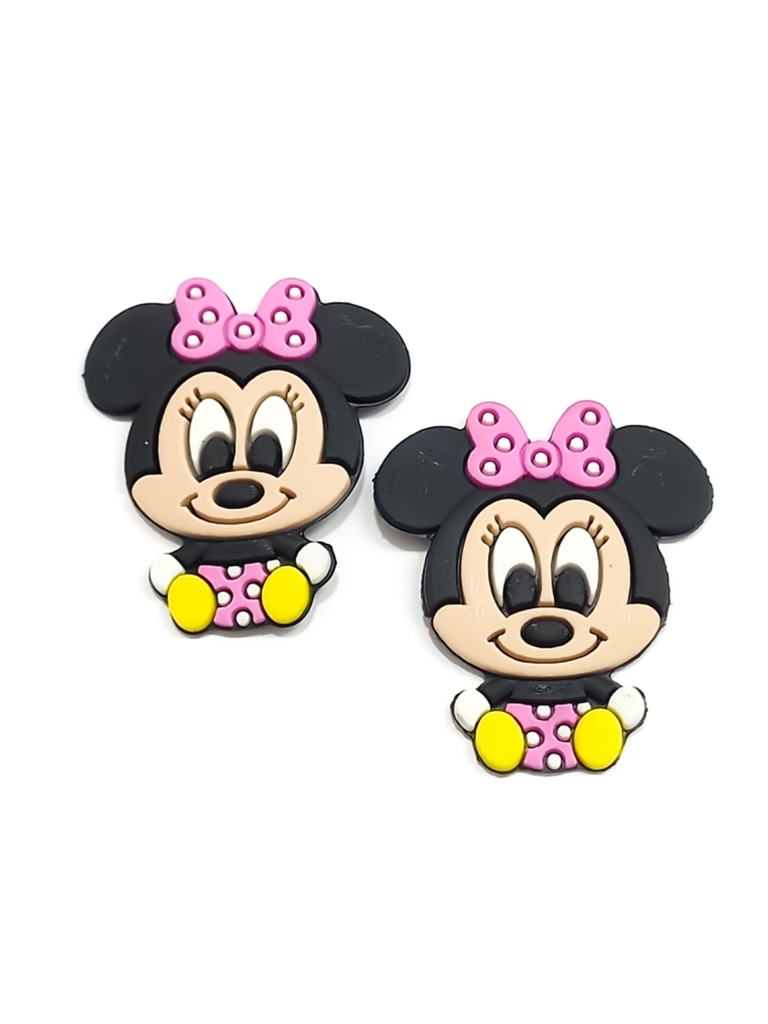 Aplique Minnie bebê laço rosa poá emborrachado - 2 unidade