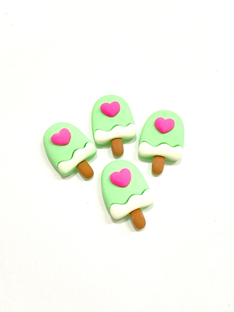 Aplique picolé verde com coração pink 25x17mm - 2 unidades
