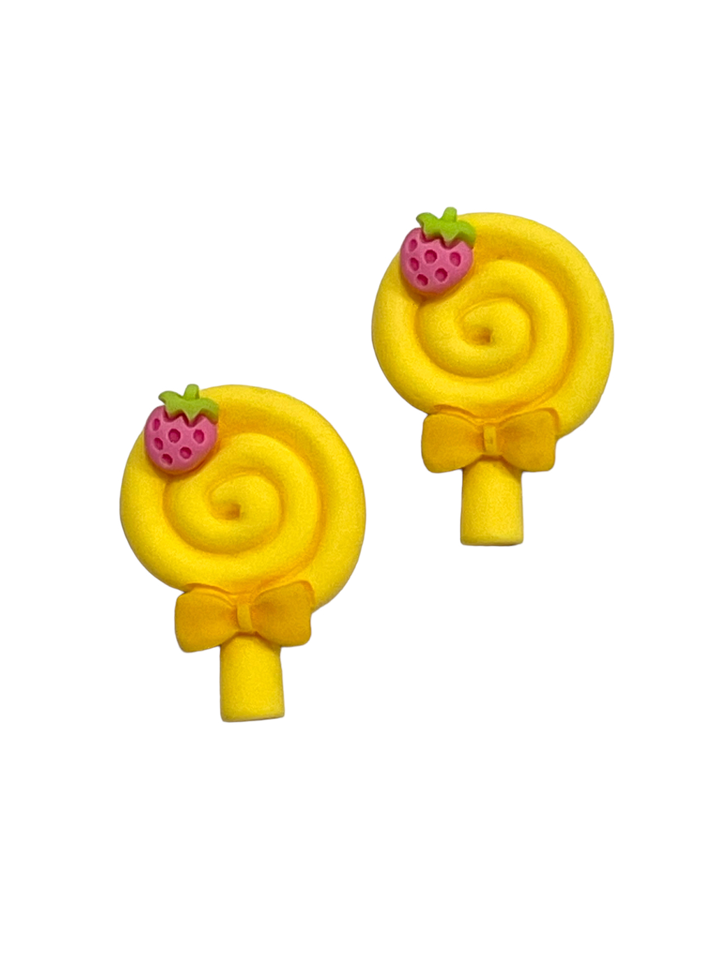 Aplique pirulito resina amarelo com morango - 2 unidades