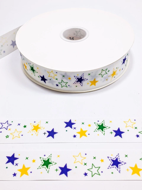 Fita Yama branca com estrelas coleção Brasil 38mm - 2 metros