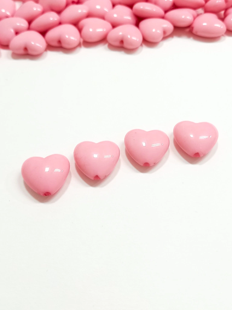 Miçanga Coração leitoso rosa resina - 12 unidades