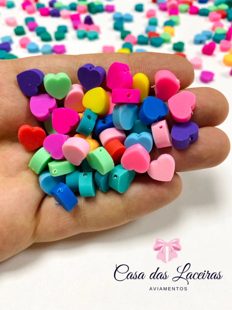 Miçanga corações colorido pvc 10 unidades