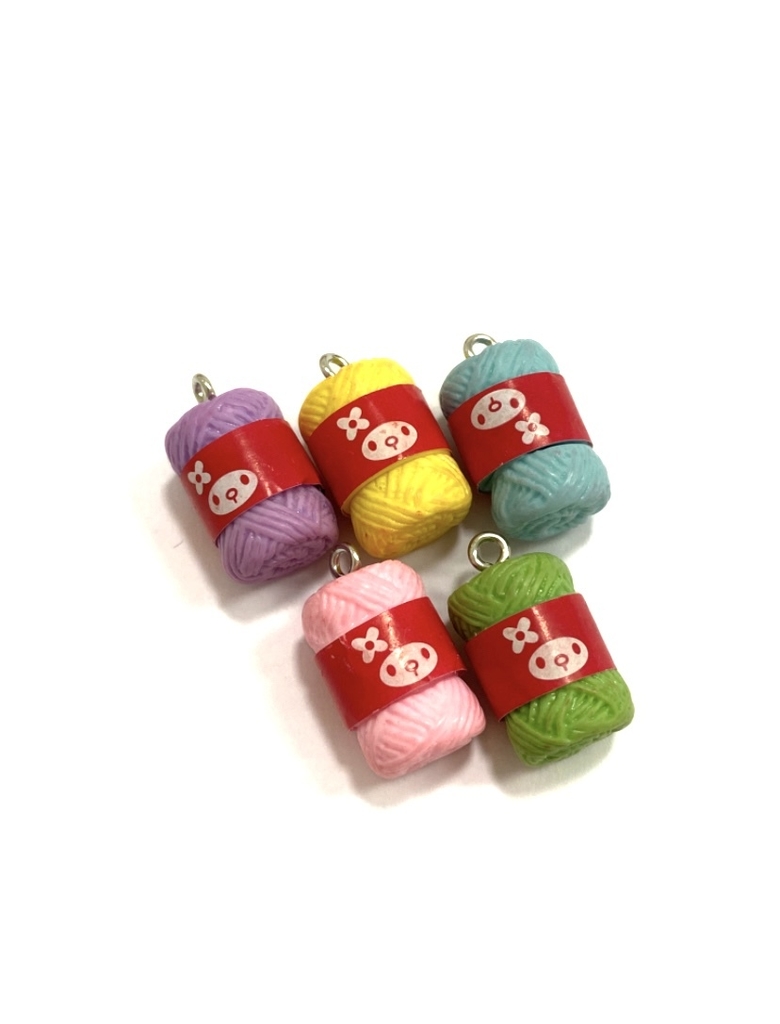 Pingente novelo de lã 20x12mm cores variadas resina - 2 unidades
