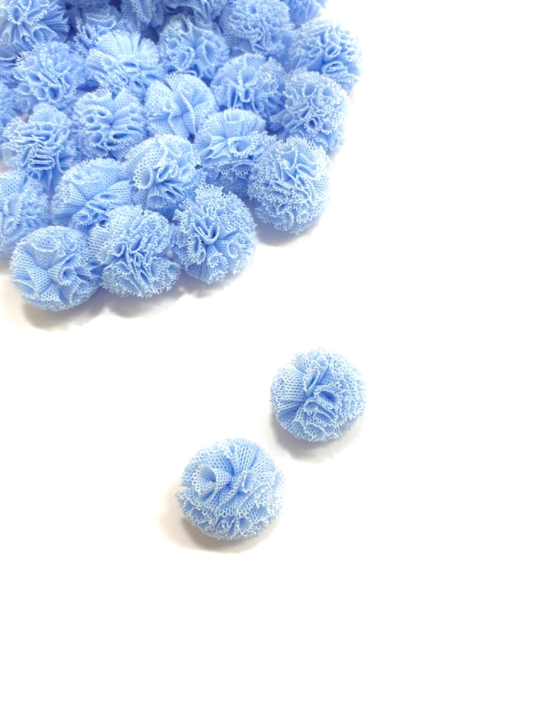 Pompom Tule 2,5cm Azul Bebê- 10 unidades