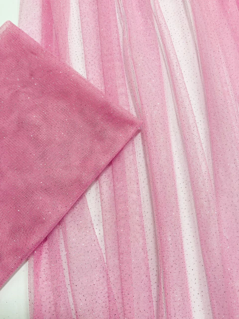 Tule rosa bebê com gliter 50cmx1,65cm - 1 unidade
